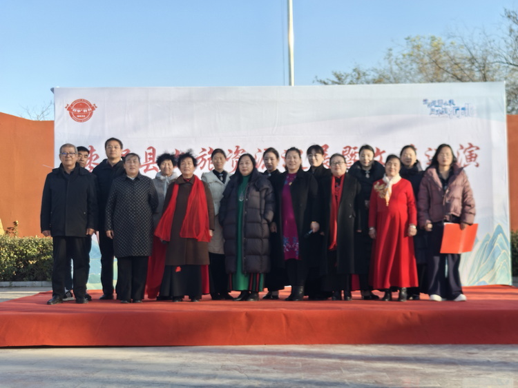 侯冢劲松文化广场,因村中 “从南京到北京,都知侯冢那棵松” 的 600 年古柏而闻名,这里既是村民休闲欢聚的核心场所,更是承载乡土记忆与文化根脉的精神地标。经过升级改造后,3000 多平的广场上,松柏环绕、碑刻林立,九龙地雕与红色文化雕塑相映成趣,为本次惠民巡演提供了独具特色的天然舞台。